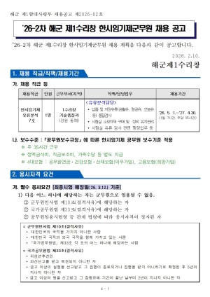- 모집 인원: 2명 ( *① 동해항_1명 / ② 옥계항_1명 )