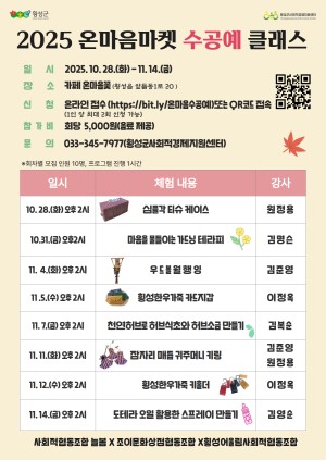 사진확대보기횡성군 사회적경제기업 성장지원을 위해 "2025 온마음마켓 수공예 클래스"를 운…