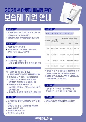 2026년 아토피 피부염 환아 보습제 지원 안내[출처 :인제군청 -시정소식-]
