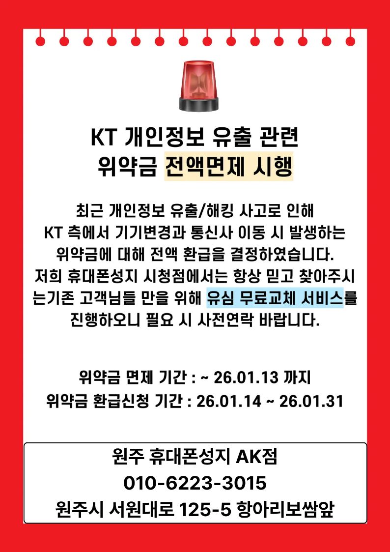 KT 이용고객 대상 1월 13일까지 위약금 전액 환급 요금할인 위약금, 단말기할인 위약금 모두 면제!!! 위약금 없이 기기교체