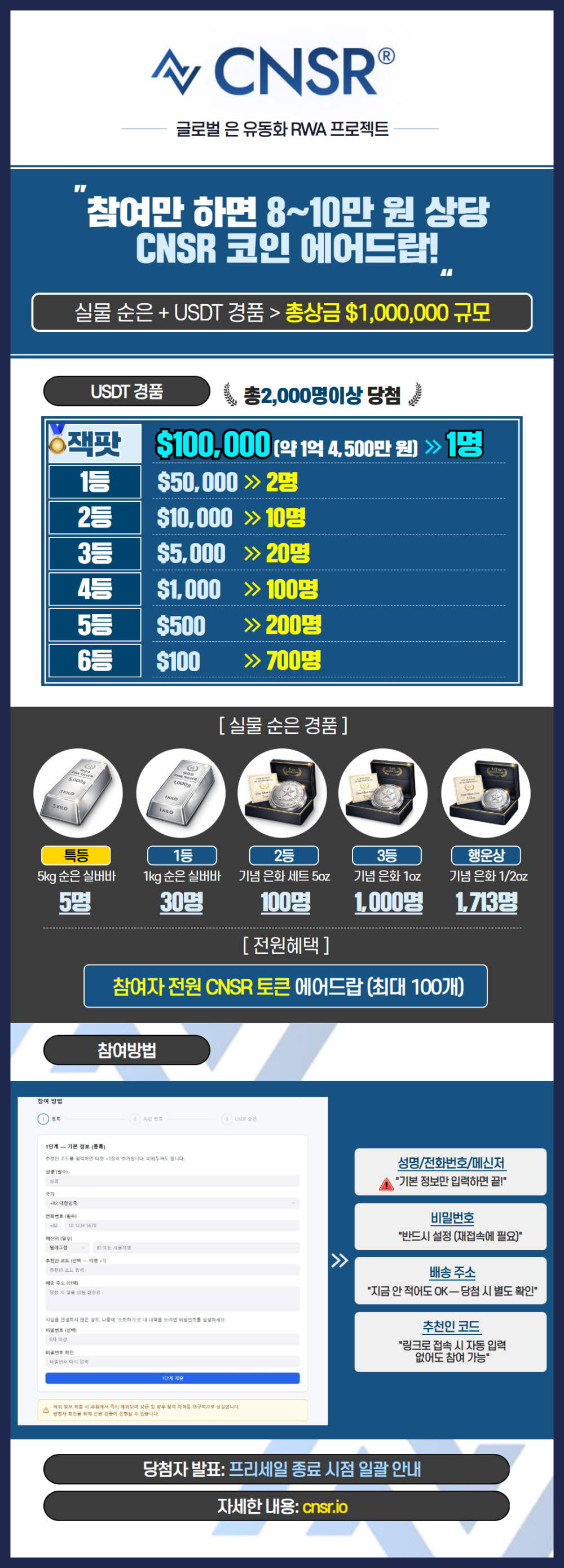 참여하시면 전원한테 CNSR 토큰 최대 100개 에어드랍 됩니다!