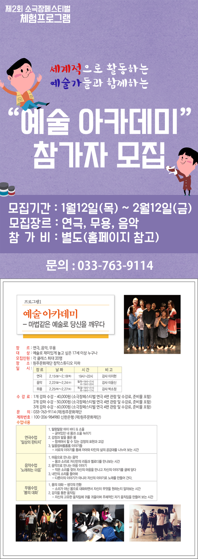 [체험/원주시] 예술 아카데미 참가자모집
