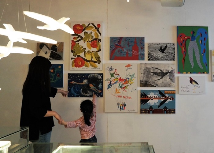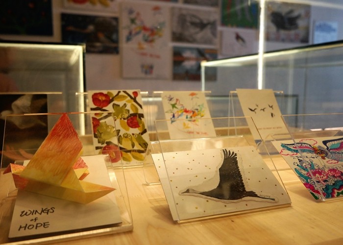 난민 아동을 상징하는 ‘새’를 주제로 한 드로잉 원화 엽서 350점 이상 (새’는 폭력, 전쟁, 억압적인 정권, 빈곤 등에 의해 피난민이 된 아이들을 상징함)