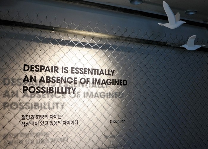 - 난민들의 험난하고 끝이 없는 여정을 의미하는 어둠 속 길을 따라가며 난민들의 삶을 간접적으로 느껴볼 수 있다.