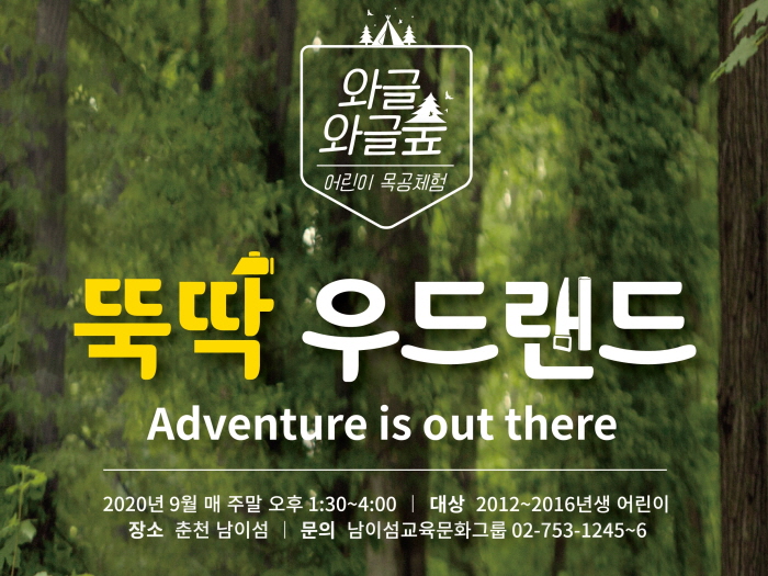 남이섬의 숲을 배경으로 한 스토리 속에서 어린이들이 직접 놀잇감을 만들고 뛰어 노는 창의 목공체험 프로그램. 동기와 흥미를 불러일으키는 스토리텔링, 숲이라는 공간에서 나누는 정서적 교감과 오감 체험은 상상력과 창의성을 발휘하게 하고 몸과 마음을 건강하게 자랄 수 있게 한다. 올해는 연령에 따라 회차를 나눠 진행함으로써 보다 눈높이에 맞는 활동으로 꾸미고, 무엇보다도 안전에 더욱 세심한 주의를 기울여 운영할 예정이다.