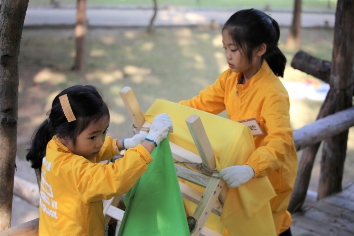 * 놀이사다리와 친환경소재의 재료들을 활용해 숲속 아지트 꾸미기