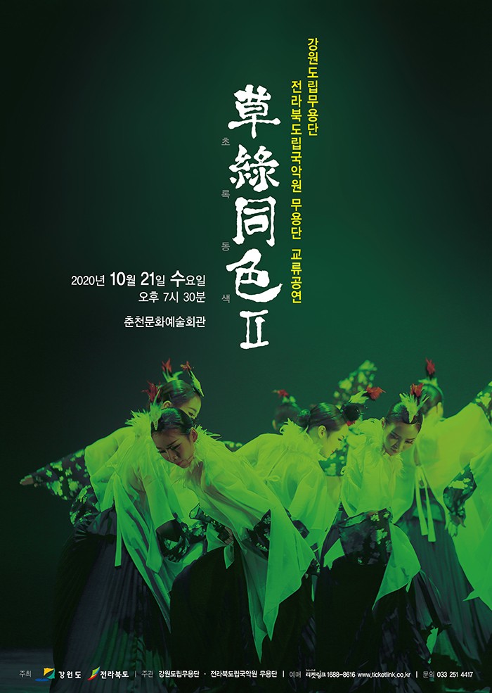 | [공연/춘천시] 강원도립무용단 X 전북도립국악원 무용단 교류공연 “초록동색” | 공연 | 춘천시 | 2020-10-21 | 2020-10-21 |