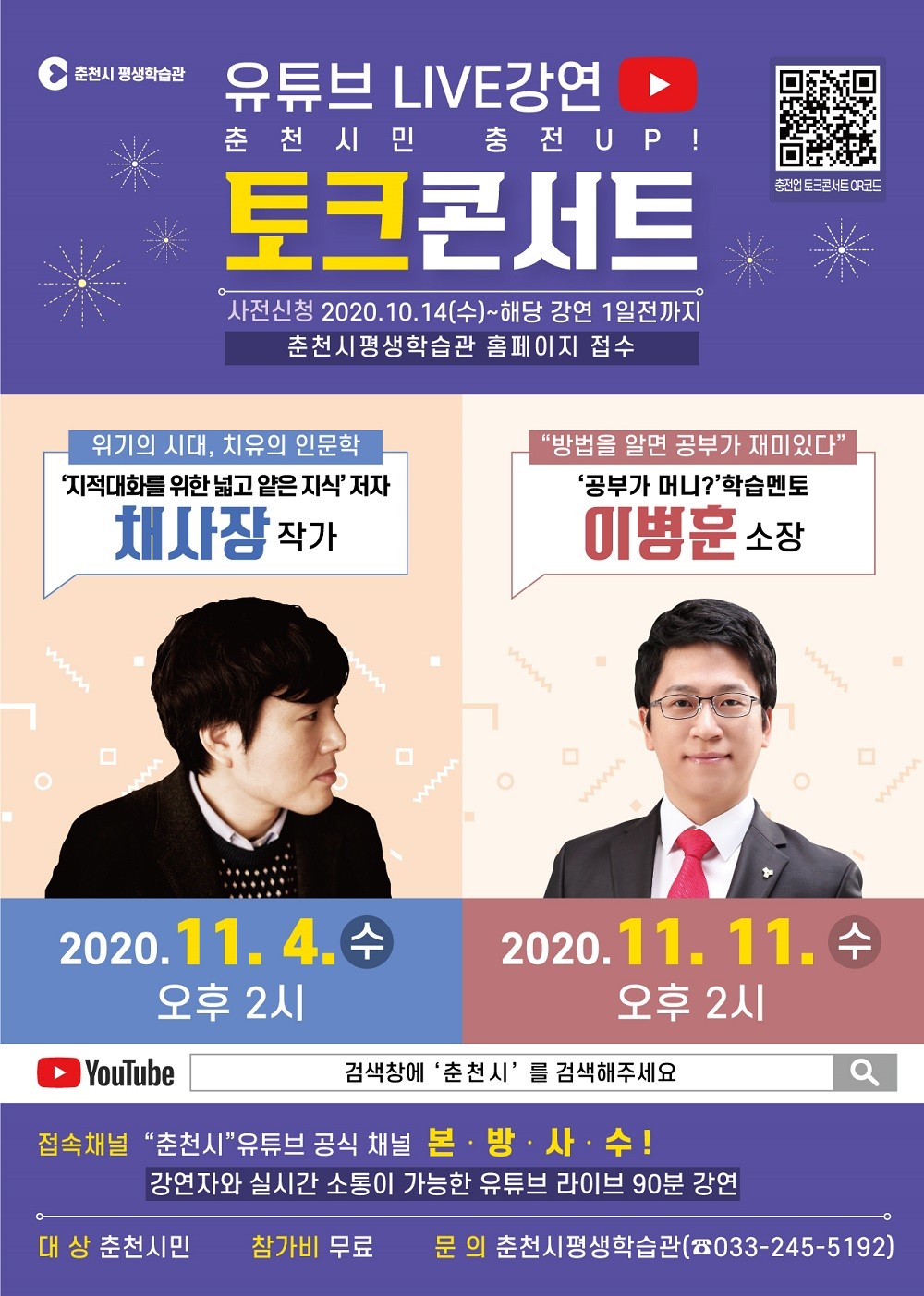 [교육/춘천시] 춘천시민 충전UP! 토크콘서트 개최(유튜브 LIVE강의)