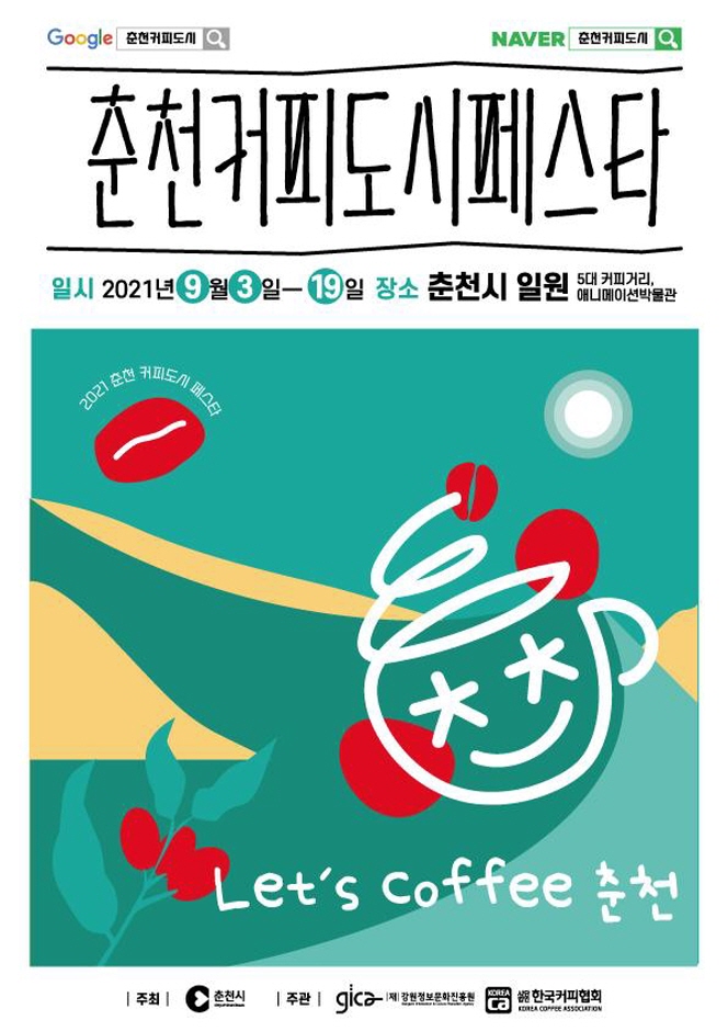 춘천 커피도시 페스타 Let's COFFEE | 행사 | 춘천시 | 2021-09-03 | 2021-09-19 |