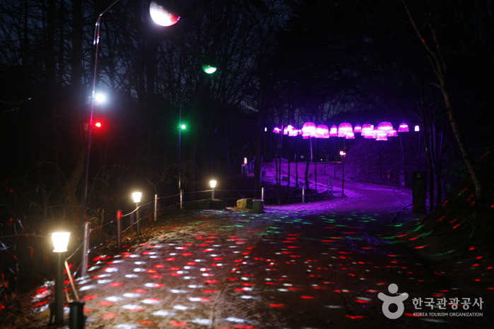 산책로를 따라 형형색색의 조명을 설치하고 화려한 볼거리를 제공하는 연출을 통해 산책의 낭만을 더하게 된다.
