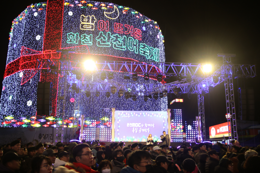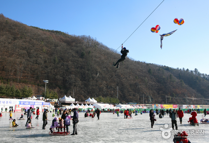 물 맑기로 유명한 화천천이 겨울 추위에 꽁꽁 얼어붙는 매년 1월에 축제가 열리며, 얼음낚시로 ‘계곡의 여왕’이라 불리는 산천어를 잡을 수 있다.
