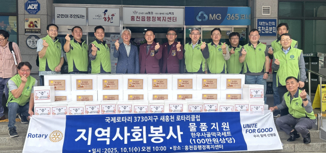 새홍천로타리클럽(회장:박기출)은 지난 1일 홍천읍행정복지센터를 방문해 취약계층 29가구를 위해 100만원 상당의 한우사골떡국세트를 전달했다. 재홍천로타리클럽은 저소득층 자녀 장학금 지원, 농촌 일손 돕기, 환경 정화 활동 등 다양한 봉사활동을 펼치고 있다.