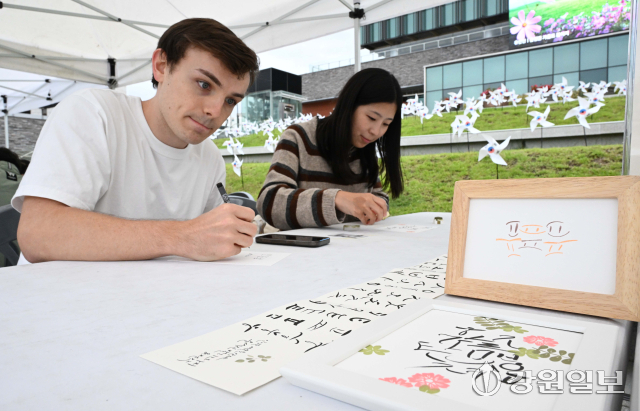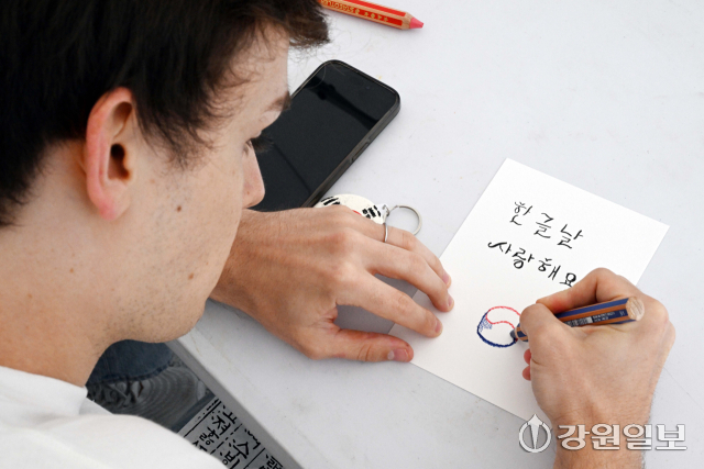 [춘천시뉴스] [포토뉴스] 한글날 사랑해요 Home뉴스강원뉴스 > 71065 아이러브강원 아이러브강원님의 홈 전체게시물 아이디로 검색 아이러브강원님의 홈 전체게시물 아이디로 검색 2025.10.09 18:40 80 0 0 LV.5 67% 관련링크 : https://www.kwnews.co.kr/page/view/2025100917202058688?area=W100000800001&page=1 4회 연결 신고 목록 게시글 신고 안내 아래 내용중 해당하는 내용이 있을경우 아래 게시글신고 버튼을 클릭하시고 사유를 작성해주시면 빠른시간 안에 삭제및 필요조치하여 드리겠습니다. 로그인후 이용이 가능합니다. 그리고 답변은 메뉴 아이러브강원 > 1:1문의에서 확인이 가능합니다. 자신 또는 제3자를 비방하거나 중상 모략으로 명예를 손상시키는 내용 범죄행위와 관련이 있다고 판단되는 내용 다른 회원 또는 제3자의 저작권 등 기타 권리를 침해하는 내용 타인의 개인정보, 사생활을 침해하거나 명예를 손상시키는 경우 자신의 글을 타인이 도용한 경우 위의 내용 이외에 기타사항 본문 사진=신세희기자사진=신세희기자한글날인 9일 춘천시청 앞 호반 광장에서 열린 제579돌 한글날 큰 잔치에 참여한 외국인과 내국인이 나만의 한글작품을 만들고 있다. 0 로그인 후 추천을 하실 수 있습니다. SNS 댓글목록 0 등록된 댓글이 없습니다.