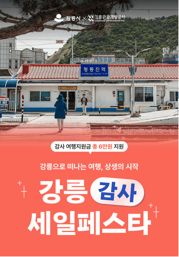 이번 행사는 대형 온라인 여행사(OTA)인 마이리얼트립(1일 개시)과 여기어때(13일 개시) 플랫폼을 통해 진행된다. 강릉의 주요 관광지와 숙박업소, 지역 렌터카 업체들이 함께 참여해 관광객에게 숙박비 2만5,000원, 렌터카 2만원 할인 등 최대 6만원 상당의 할인 혜택을 제공한다.