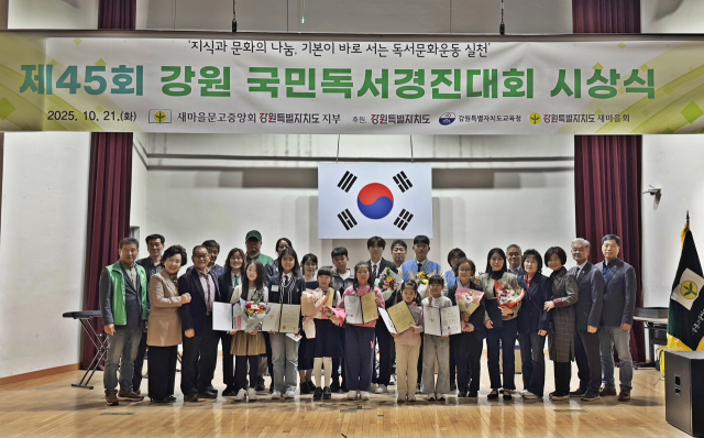 새마을문고중앙회 철원군지부(지부장:최태화)가 지난 21일 횡성문화원에서 열린 제45회 강원국민독서경진대회 시상식에 참석한 가운데 이날 독후감 개인 초등(고)부문에서 철원 서면초 김온유 학생이 강원특별도지사상을 수상하는 등 총 27명이 독후감 및 편지글, 지도교사 부문에서 수상의 영예를 안았다.
