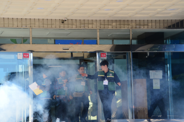 이번 훈련에는 군청 및 군의회 직원 등 300여 명이 참여한 가운데, 실제 화재 발생 상황을 가정해 △화재 고지 △직원 대피 △초기 진압 △긴급구호 등 단계별 대응 절차를 진행했다.