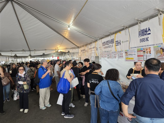◇미국'제52회 LA한인축제'에 마련된 원주기업 부스에 현지인들이 대거 몰리면서 인기를 모았다. <원주시 제공>강원특별자치도 경제중심도시 원주의 수출기업이 미국 LA에서 낭보를 전했다.