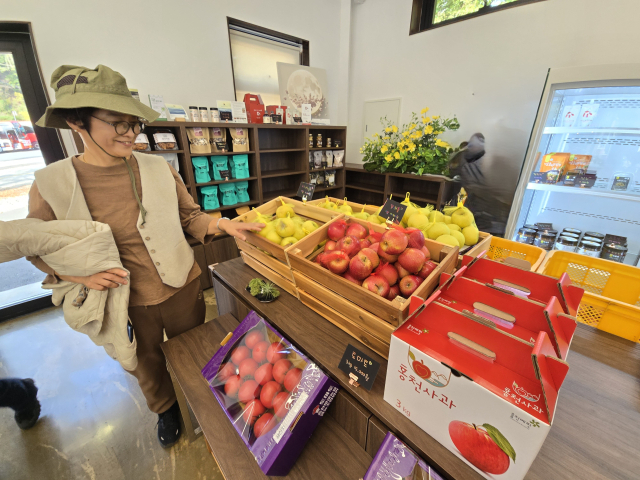 매장에는 홍천의 사과와 이를 원료로 만든 사과 주스, 된장 등도 판매 중이다. 판로를 찾지 못해 어려움을 겪는 농가, 소상공인들의 생산품을 납품 받아 판매하는 것이다.