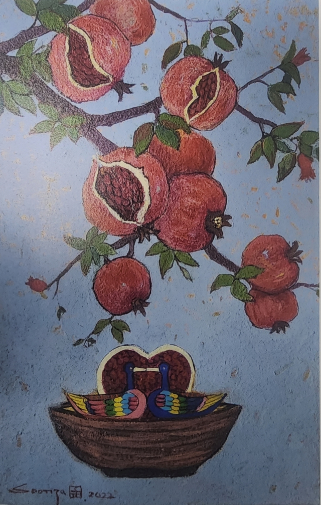 맹순자 작가의 ‘기쁨의 정물’.【영월】(사)한국미술협회영월지부는 7일까지 영월문화예술회관에서 회원전을 개최한다.