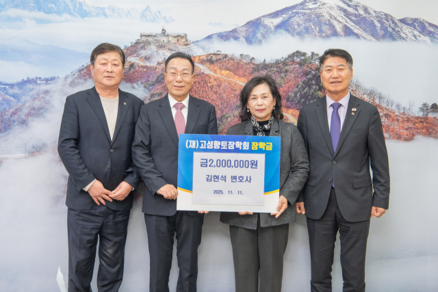 김현석 변호사는 11일 군청 군수 집무실에서 지역인재 육성을 위한 고성향토장학회 장학금 200만원을 함명준 고성군수에게 기탁했다.