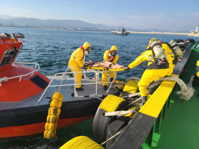 훈련은 사고해역 통제 및 유출물질 탐지, 황산 추가유출 차단, 사고선박 내 작업자 구조, 오염지역 환경 모니터링 등 실제 사고를 가정한 절차로 진행됐다.