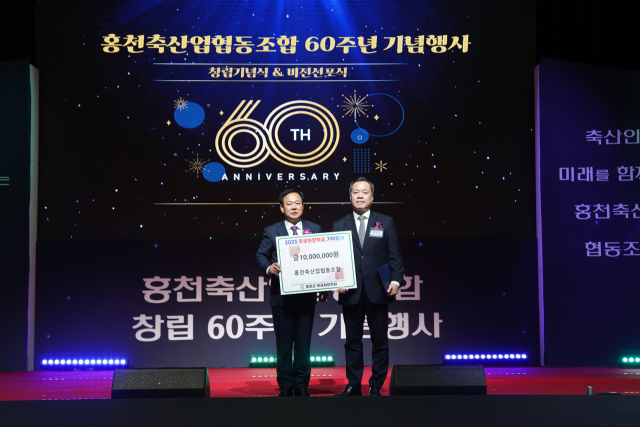 홍천축협은 18일 홍천군종합체육관에서 창립 60주년을 기념하며 지역 인재 육성을 위해 무궁화장학금 1,000만원을 기탁했다. 강문길 조합장은 “홍천군의 미래 세대 육성을 위해 홍천축협도 노력하겠다”고 말했다.