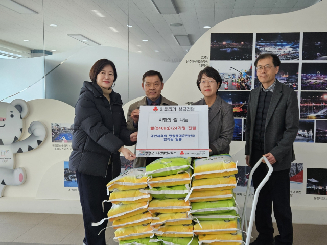대한체육회 평창동계훈련센터(부촌장:김칠봉)가 18일 대관령면사무소에서 지역 내 취약 계층을 돕기 위한 10㎏들이 쌀 24부대를 대관령면사무소에 기탁했다.