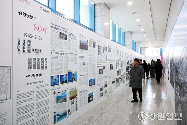 18일 인제산촌민속박물관에서 열린 '강원의 역사전-인제의 어제와 오늘' 개막식에서 방문객들이 전시를 보고 있다. 전시는 오는 23일 오후까지 이곳에서 이어진다. 신세희기자