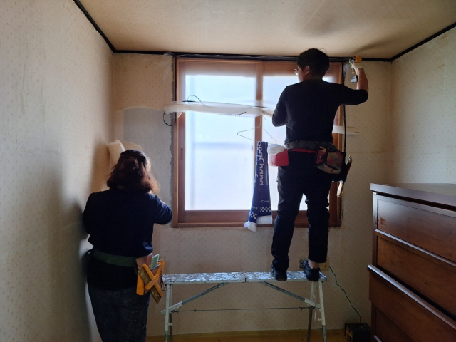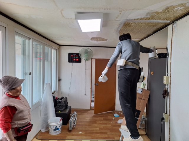 평창읍 봄.봄 지원단(단장:황용진)이 19일 평창읍 일원 복지 사각지대 4가구를 대상으로 창호 교체, 천장 보수, 벽지 도배 등 집수리 지원사업을 지원했다.