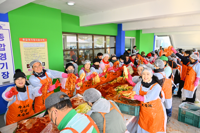 속초종합사회복지관과 속초시자원봉사센터가 공동 주관한 이날 행사에는 지역사회보장협의체 위원, 자원봉사단체, 관계 공무원 등 200여명이 참여해 김장김치 10톤(10㎏ 1,000통)을 정성껏 담갔다. 완성된 김치는 지역 내 저소득 가구와 사회복지시설에 전달됐다.