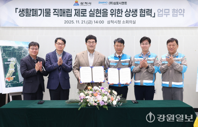 삼척시와 ㈜삼표시멘트가 21일 생활폐기물 매립 제로 실현을 위한 상생협력 업무협약을 체결했다.