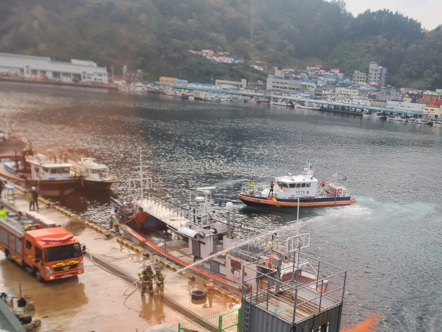 동해해양경찰서 울릉파출소는 25일 울릉 저동항에서 집단계류 어선 화재 상황을 가정한 민·관 합동 대응훈련을 실시했다.