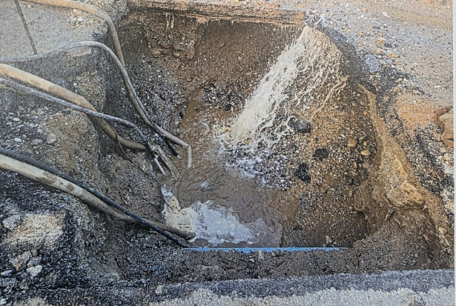 ◇26일 원주 지정면 보통로 일원의 광역상수관로가 파손돼 주변 지역에 광역상수도 공급이 중단됐다. 사진은 광역상수관려 파손 지점. <원주시 제공>