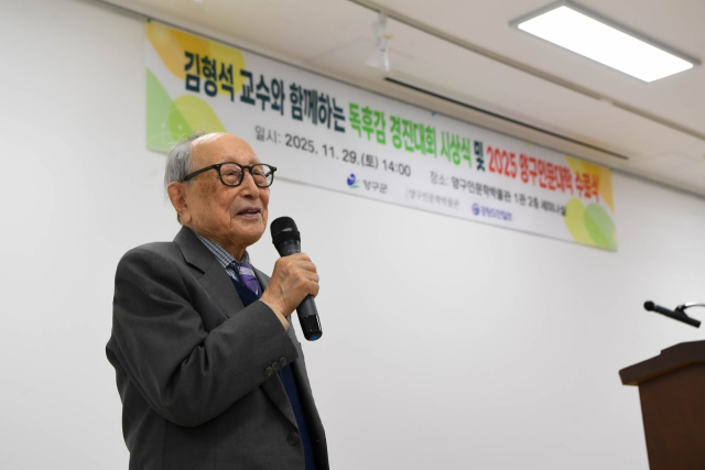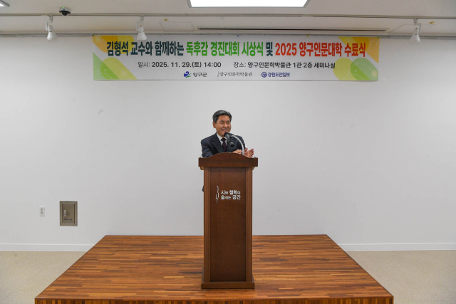 김형석 교수와 함께하는 독후감 경진대회 시상식 및 2025 양구인문대학 수료식이 지난달 29일 양구인문학박물관 1관 2층 세미나실에서 열렸다. 이날 서흥원 양구군수, 김정미 양구군의원, 김형석 연세대 명예교수를 비롯한 관계자들이 참석해 시상식과 수료식을 축하했다.
