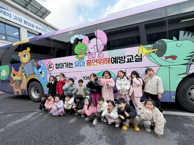 이번 교육은 한국건강증진개발원 국가금연지원센터와 연계해 추진됐으며 전문 강사가 버스형 교육차량에서 프로그램을 직접 진행했다. 교육버스 내부에는 유아들의 관심을 끌 수 있는 다양한 체험존이 마련돼 놀이와 스토리텔링을 통해 자연스럽게 담배의 위험성을 이해하도록 구성됐다.