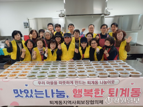 춘천 퇴계동지역사회보장협의체(위원장:김흥복)는 13일 특화사업으로 반찬나눔 활동을 진행했다. 위원들은 소불고기 외 반찬 3종을 직접 만들어 취약계층 가구에 전달하고 안부를 확인했다. 김흥복 위원장은 “앞으로도 소외된 이웃을 위해 관심을 가지고 나눔 활동을 꾸준히 실천할 수 있도록 노력하겠다‘고 말했다.