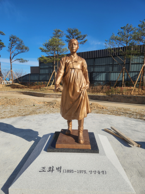 ◇양양군평생학습관 공원에 조성된 조화벽 지사 전신 동상.