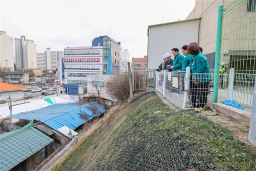 시는 지난 12일 해빙기 인명피해 우려시설인 명륜1동 급경사지 현장에서 원강수 시장과 담당 공무원 등이 참석한 가운데 시설물의 균열 상태와 배수시설 기능 유지 여부 등 관리 실태를 점검했다. 또 지난해 보강공사를 마친 사면의 안정성 여부 등도 살폈다.