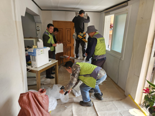 양양 강현면 지역 봉사단체인 강현푸른회(회장:김동훈) 회원들은 지난 13일 강현면 기초생활거점조성사업 지역역량강화사업으로 추진중인 취약계층 집수리 사업에 참여해 지역내 9가구를 대상으로 도배·장판교체 및 지붕수리 등 봉사활동을 펼쳤다.
