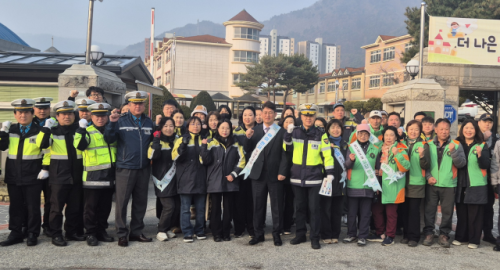 ‘2026 안전점검의 날 교통안전 캠페인’이 16일 인제남초 앞에서 인제교육지원청, 인제경찰서, 인제군자율방범대, 모범운전자연합회인제군지회, 인제군의용소방대 등 관계기관·단체가 참여한 가운데 열렸다.