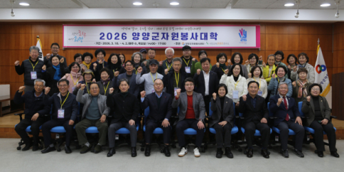 양양군자원봉사센터는 18일 양양군문화복지회관 2층 소강당에서 2026년 양양군자원봉사대학 개강식을 갖고 다음달 2일까지 강의를 이어간다.