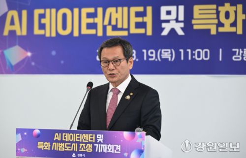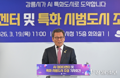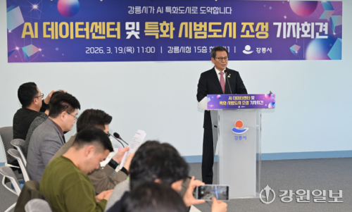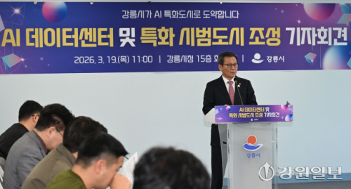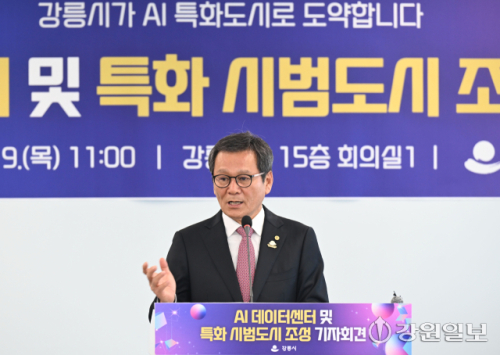 김홍규 강릉시장은 19일 시청 회의실에서 기자회견을 열고 "AI 데이터센터 특화단지 조성을 통해 강릉을 첨단 디지털 산업의 중심지로 성장시키겠다"며 "국토교통부 AI 특화 시범도시 공모사업에도 도전함으로써 시민 삶의 질을 높이고 지역 경제에 새로운 활력을 불어넣고자 한다"고 밝혔다. 강릉=권태명기자