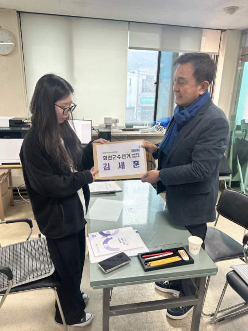 ◇6.3 지방선거 화천군수 선거에 출마하는 더불어민주당 김세훈 전 테크노파크 정책협력관이 지난 22일 화천군선거관리위원회에 예비후보 등록서류를 제출하고 본격적인 선거전에 돌입했다.