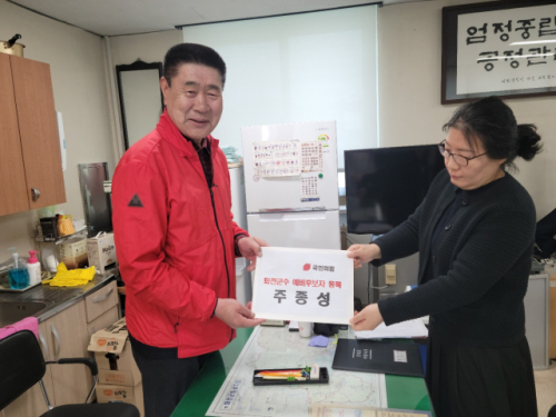 ◇6.3 지방선거 화천군수 선거에 출마하는 국민의힘 주종성 화천중고총동문회장이 지난 22일 화천군선거관리위원회에 예비후보 등록서류를 제출하고 본격적인 선거전에 돌입했다.