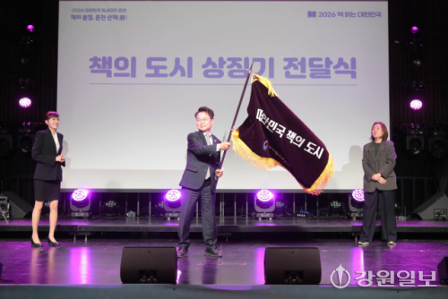 ◇춘천시는 23일 상상마당 사운드홀에서 육동한 시장과 배숙경 시의회 부의장, 박진오 강원일보 사장, 문화체육관광부 및 한국출판문화산업진흥원 관계자, 시민 200여명이 참석한 가운데 '2026 대한민국 책의 도시' 선포식을 개최했다.
