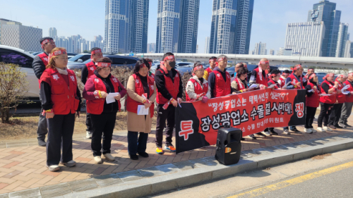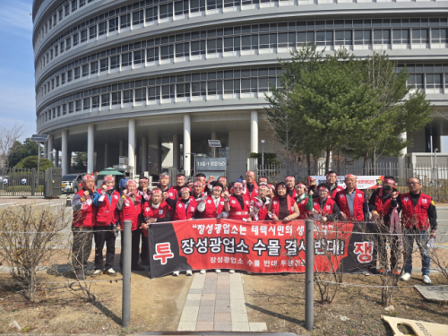 【태백】장성광업소 수몰 반대 투쟁위원회가 23일 세종 산업통상자원부 청사 앞에서 지하갱도 수몰 반대 집회를 열고 수몰 계획의 극각 철회와 국가 차원의 보존 대책 마련을 촉구했다.