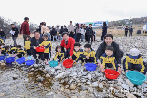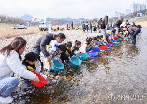 삼척시는 23일 오십천 일원에서 어린이집·유치원생, 초등학생 등 100여명이 참여한 가운데 어린연어 10만 마리를 방류했다.