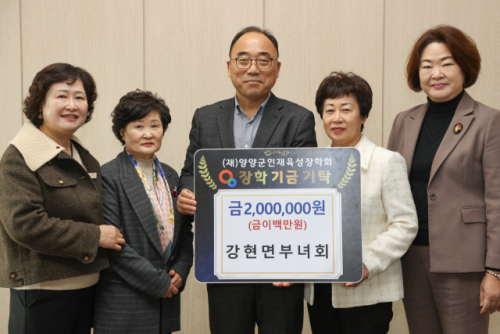 강현면부녀회(회장:차은희)는 25일 양양군청을 방문해 탁동수 양양군수권한대행에게 인재육성장학기금 200만원을 전달했다.