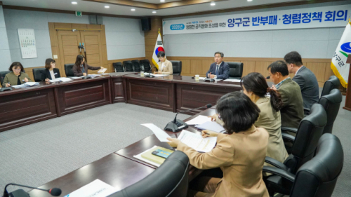 양구군은 24일 군청 중회의실에서 청렴한 공직문화 조성을 위한 반부패·청렴정책 회의를 열고 관련 정책 추진 방향을 논의했다.