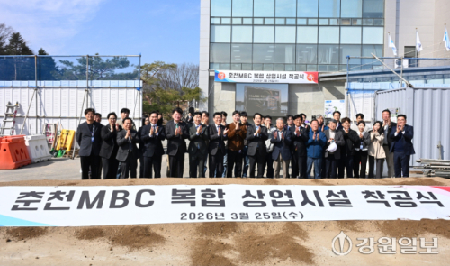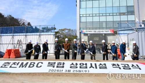 춘천MBC 복합 상업시설 착공식이 25일 삼천동 부지에서 최헌영 사장, 백승호 노동조합 지부장, 이영수 사우회 회장을 비롯한 직원들과 박진오 강원일보 사장 및 내빈들이 참석한 가운데 열렸다.